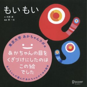 視覚が未発達な赤ちゃんでも認識できる「強いコントラスト」と、本能的に注目してしまう「にこにこ顔」が計算し尽くされています。 - 『もいもい』